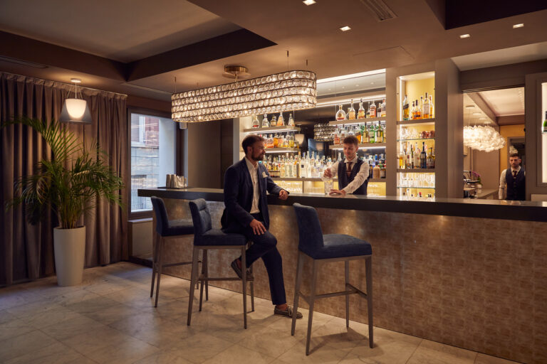 An elegant and sophisticated environment with design elements. The ideal meeting place to enjoy a glam aperitif in the evening or an after-dinner drink.
