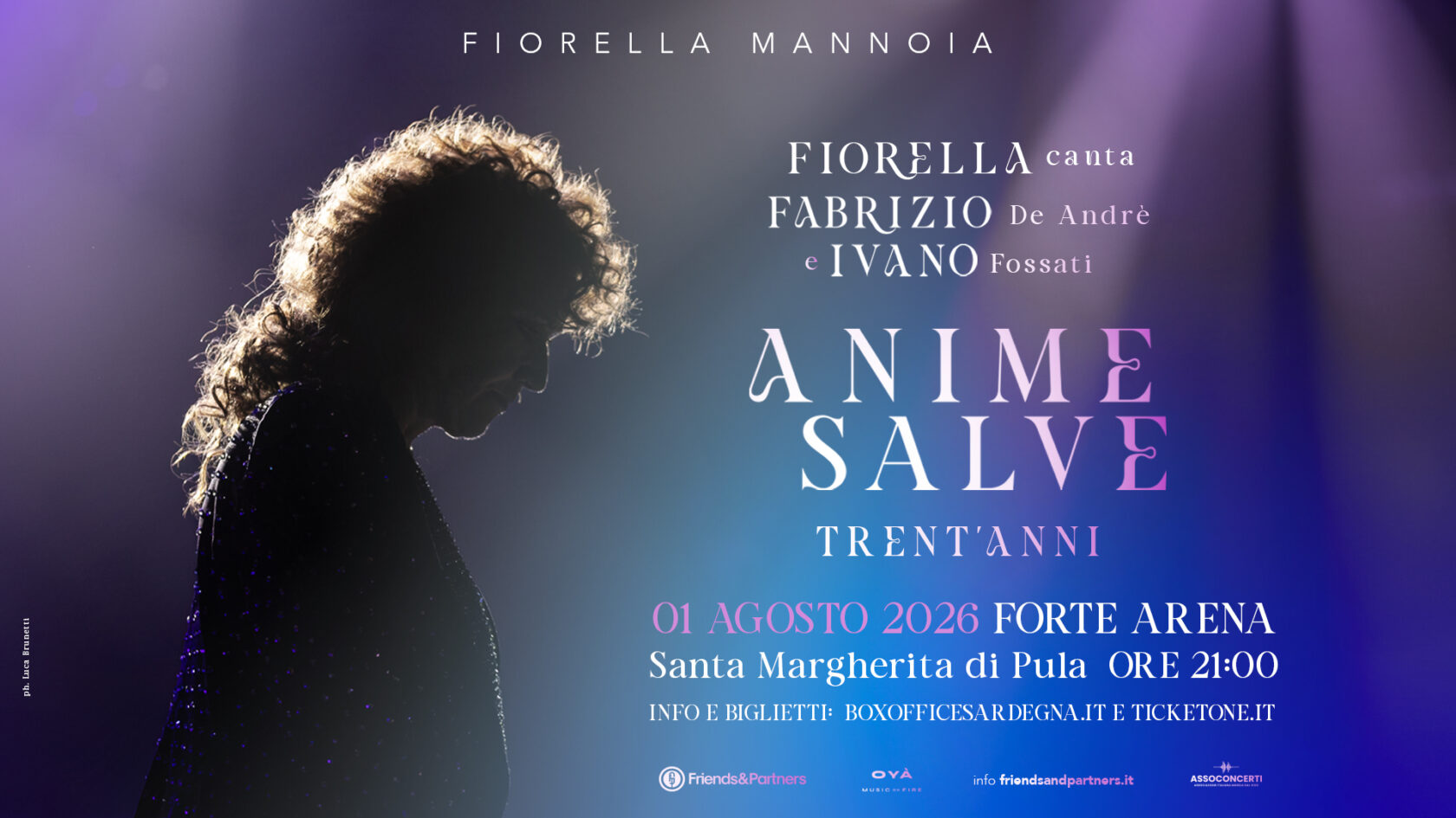 Il tour 2026, intitolato “Fiorella canta Fabrizio e Ivano: Anime Salve”, nasce nel trentennale di Anime Salve, l’ultimo straordinario lavoro di Fabrizio De André, realizzato insieme a Ivano Fossati e pubblicato nel 1996. Un album considerato una pietra miliare della musica italiana, insignito della prestigiosa Targa Tenco, capace ancora oggi di parlare a generazioni diverse con la sua straordinaria forza poetica e civile.